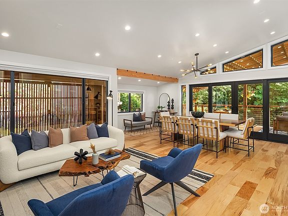 Fully remodeled in 2021, this Hawthorne Hills home is a masterclass in design. Keeping with the NW contemporary vibe, the home is full of warm wood textures combined with energy efficient smart home features for easy living. You'll love the open concept with vaulted ceilings, exposed beams and wall of windows. The kitchen features Fisher & Paykel appliances, waterfall island and Bosch refrigerator. Two beds and full bath on the main floor. Family room, bedroom, laundry and full bath on the lower level and a DREAMY primary suite fills the entire upper floor. The lush backyard and four seasons covered deck with ipé wood siding make this home feel like your own private oasis. Oversized garage with heat/AC. Walkable to Met Market, pubs & cafes.