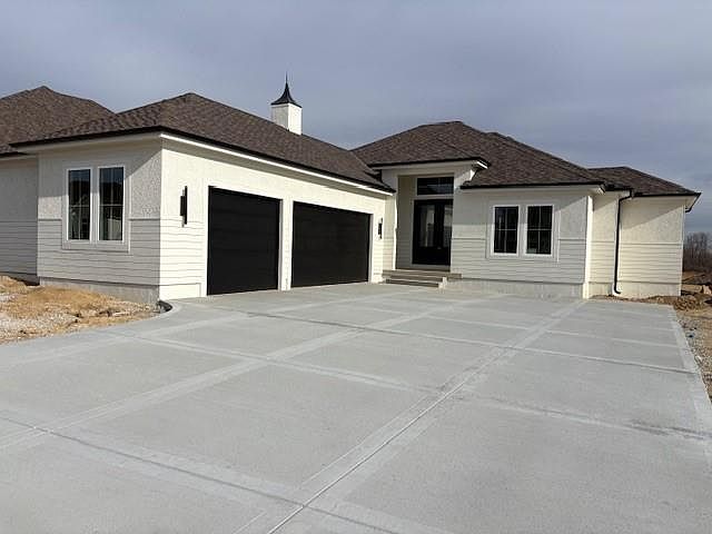 This stunning reverse 1.5-story home in the sought-after Montebella subdivision showcases thoughtful design and modern luxury. Step inside to soaring 12-foot ceilings in the entry and great room, complemented by 10-foot ceilings throughout the rest of the home for a spacious and airy feel. The gourmet kitchen is elevated by a full butler’s kitchen, perfect for entertaining and additional prep space. The exterior features a unique L-shaped garage, designed to discreetly conceal garage entrances from the street while enhancing curb appeal. The finished lower level adds just over 1,100 square feet of living space, offering plenty of room for recreation, relaxation, or hosting guests. This home is in the finishing stages of construction and is essentially move-in ready!