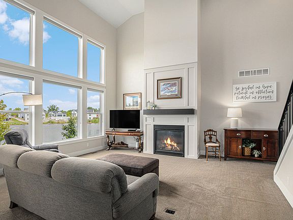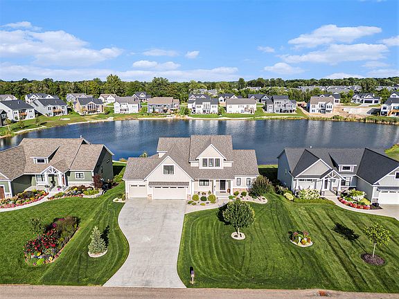 Parade of Homes 2020 of Baumann Building. Lakefront prime lot and exceptionally cared for home with many extras include: 3 car garage, large custom kitchen with island and hard surface counters, living room open 2 levels with huge windows looking waterside, fireplace surrounded by built-ins, master suite with tiled shower (euro door), walk-in closet with custom shelving, large dual sink vanity with quartz tops, office with glass French door. Upstairs offers the 2nd and 3rd bedrooms, bonus room over garage finished, loft room play area and 2nd full bath. The walkout lower level has finished 4th and 5th bedrooms, a full bath, and expansive rec room. Outside you can enjoy a gracious sized deck for morning coffee or evening entertaining. Patio was built double sized.