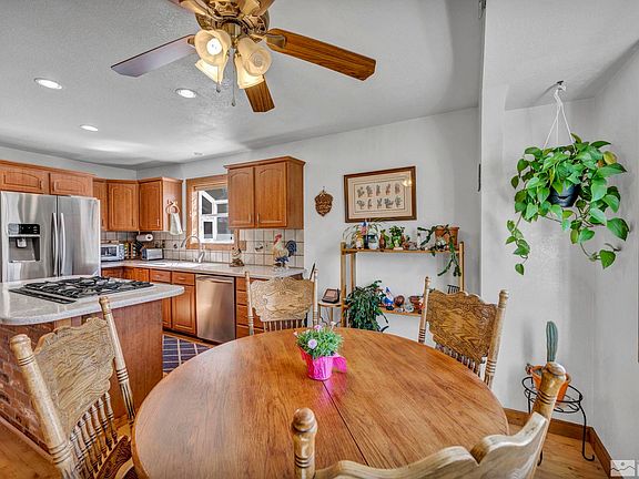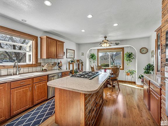 This is a beautiful Riverview Park home and is in a premier location of Carson City. You will enjoy the dog friendly walking paths in the neighborhood, Veterans Park to the Carson River is only a short distance away. This is a large corner lot. Don't miss the Giant RV access with gate access on both sides of the lot. Oversized 2 car garage with workbench. Access to the freeway is only minutes away. Reno is 36 miles away and Lake Tahoe only a short 23 mile ride., The front and back are full landscaped with a drip irrigation system and is low maintenance? The furnace is only 4-5 years old (air) heater, Lg kitchen pantry, architectural features, built in wine rack, pull trash, 5 gas burners, canister lighting, under cabinet lighting, microwave, laundry inside, separate dining rm, remodeled master bath with huge shower, double sink, heated floors,