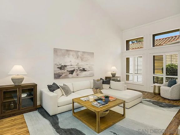 LIVE LARGE in the "Island in the Hills"! The largest model in Villa Dominique, this expansive 2513 sqft PUD is tucked back in one of the most desirable areas of Tierrasanta. Soaring ceilings greet you into the inviting Living Room with windows overlooking the serene natural setting. The generous kitchen opens to a breakfast nook and a family room, before leading you to the two downstairs bedrooms, a full bathroom, and a laundry room, as well as access to the 2-car attached garage. Upstairs, you'll find two primary suites, one with its own private balcony overlooking the surrounding natural beauty of the green space. A large, private patio with several access points within the downstairs completes the package. With only a few shared walls at the downstairs level (and no shared walls upstairs), this home feels like a free standing house! Community amenities include tennis courts and a secured overflow open parking area for add'l vehicles, boats, or RV's.
