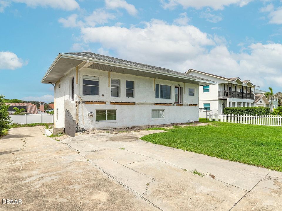No flooding during Hurricane Milton! Motivated Seller!! Rare opportunity with ocean views, fixer upper with guest house/ in-law suite and approved building permit in hand with Dave King of Rescue Builders. See renders of new floor plan and exterior to include more modern front with 4 sliding glass doors and glass front door, and extended 10 foot by 49 foot deck across the front with cable railing. New floor plan of guest house over garage with separate entrance changed from 1 bedroom to 2 bedrooms. You have the opportunity to customize the finishes to your liking and potentially shorten the renovation time with the current owner's approved building permit recently issued by the town of Ponce Inlet. Cash or renovation loans only. Square footage received from tax rolls. All information deemed accurate but cannot be guaranteed.