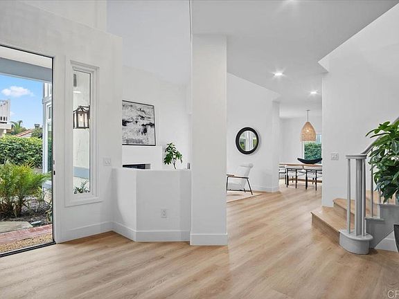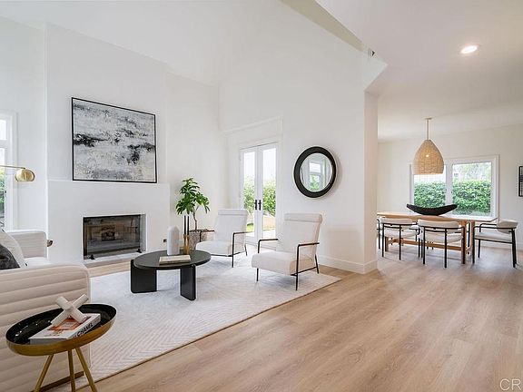 OPEN HOUSE! SATURDAY 10-4 FROM 12:00-3:00. Step into this stunning, fully remodeled home in the exclusive, gated enclave of Laguna Shores-just 26 residences nestled in a private cul-de-sac. This home is bathed in natural light and showcases serene views of the Agua Hedionda Lagoon and Carlsbad hills. Renovated by San Diego design-build firm Rice Interiors, you'll find a thoughtfully reimagined interior featuring an open, airy layout with dramatic volume ceilings, skylights and transom windows. The brand new kitchen, with two-tone white and oak cabinets, zellige tile, large island, custom range hood and all new LG appliances, is a showstopper- all three bathrooms have been beautifully redesigned with modern vanities, Delta plumbing and natural tile. Luxury flooring throughout complemented by upgraded Milgard windows and doors. This versatile floor plan includes a spacious bedroom and bath on main level while upstairs boasts dual primary suites with spa-inspired bathrooms. This is a rare opportunity to own a fully remodeled home and enjoy all the many amenities that this wonderful coastal community has to offer!