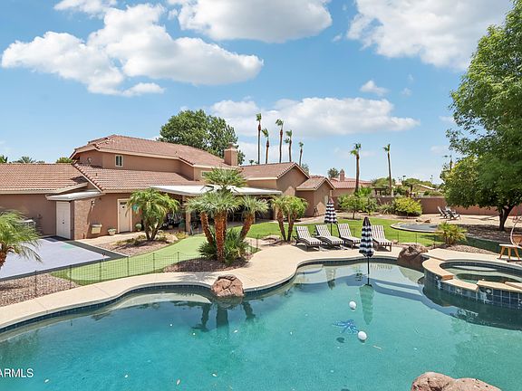 Your Ultimate Backyard Paradise in Gated community. Welcome to a one-of-a-kind property that redefines upscale living. Perfectly designed for comfort, entertainment, and unforgettable memories, this home offers the rare opportunity to own your own private resort — without ever leaving your backyard. Live in the MOST convenient location - Mesa Gilbert Border. Enjoy a resort-style swimming pool surrounded by lush landscaping, ideal for relaxing weekends