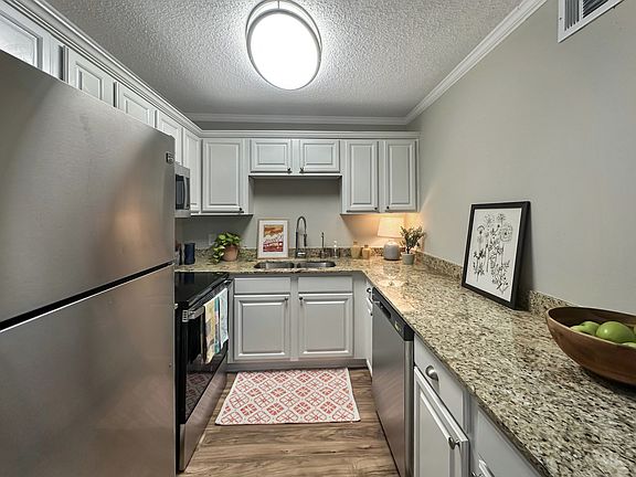 Corner unitStainless steel appliancesGranite countertopsNew flooringUpdated lighting