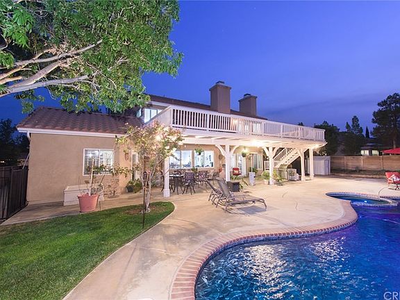 ***LIVE BEAUTIFULLY*** 5 Bed Pool & Spa Oasis Estate w/ A 3 Car Garage & RV Access On A Cul-De-Sac! High Ceilings Upon Entrance. Wood-Tile Flooring & Plantation Shutters Throughout. Formal Living & Formal Dining Room. The Kitchen Offers Granite Counters, Modern White Cabinetry, Stainless Steel Appliances, And Opens Up To The Wet Bar And Spacious Family Room. Downstairs Bed & Full Bath. The Master Suite Offers Vaulted Ceilings, A Fireplace, Two Walk-In Closets, A Massive Private Balcony, And A Remodeled Master Bath w/ A Stone-Tiled Shower & Large Soaking Tub. Create Many Memories w/ Friends & Family And Entertain In Your Oasis Backyard That Features A Pool, Spa, Waterfall, Grass Area, Covered Patio, And Mature Palms!