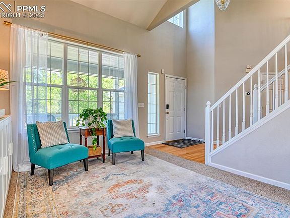 Looking for a beautiful home in Northeast Colorado Springs with access to a community pool, tennis & pickleball courts, and the Powers Corridor? You've found it! A bright and inviting home in the Sierra Ridge neighborhood. Built in 1996, this 4-bedroom, 4-bath home with 2 car garage offers a comfortable layout, neighborhood amenities, and a location close to everything you need. The main level feels open and welcoming, with large windows in the living room and an extra-high window above the front door filling the space with natural light. The dining room features extra windows that brighten the area and provide additional views of the outdoors. Tall ceilings throughout the main areas create a spacious, airy atmosphere. Upstairs, the sleeping quarters include the primary bedroom with an en suite five-piece bathroom and walk-in closet, two additional bedrooms, and a full bath. A small balcony overlook gives a peek down into the dining and great room below. The basement adds flexibility with a finished living area that can serve as a family room, guest space, or home office, complete with a bedroom and full bathroom. Radon mitigation is already installed and tucked away. Central air conditioning keeps the home comfortable year-round. Outside, the backyard patio provides a relaxing space for gatherings or quiet evenings. Walking paths behind the property lead directly to the private community pool and tennis and pickleball courts, making it easy to enjoy the outdoors. The front porch offers a peaceful spot for sunsets or morning coffee with mountain views. Daily errands and shopping are simple, with Target, Walmart, Walgreens, grocery stores, and the local favorite Wayfinder Coffee Shop just minutes away. The Powers Corridor also offers plenty of dining and retail options. Experience everything this home and neighborhood have to offer. Arrange a private tour today and discover why is such a special place to live.