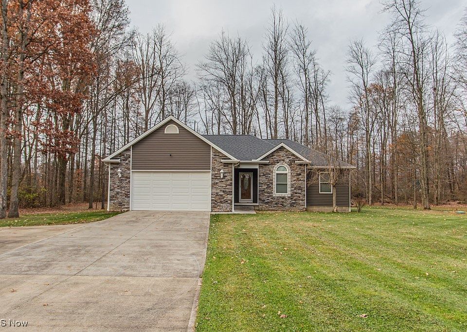 Beautifully set on 2.12 acres in Vienna Township, this well-kept 3 bedroom, 3 bath ranch built in 2015 offers the perfect blend of modern comfort and peaceful surroundings. The home features 1,293 sq ft on the main level with an open, inviting layout and a cozy fireplace as a focal point. The spacious kitchen and living areas make everyday living easy, while large windows bring in natural light and relaxing views of the wooded backdrop.