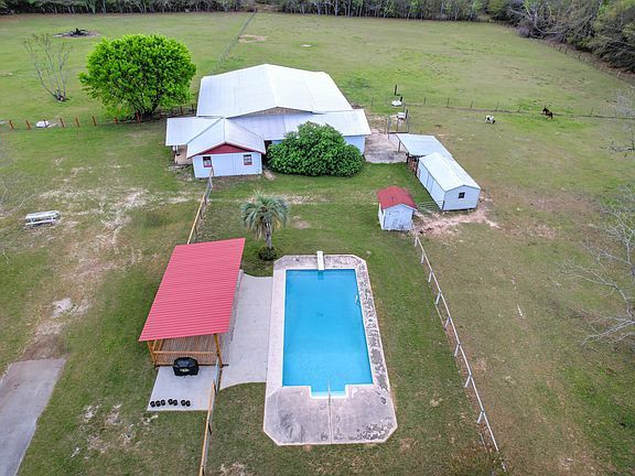 This small ranch can house up to 8 horses. This farmhouse, is a quaint cottage style with three bedrooms, sun room, tile and wood flooring. Out back you will find a spacious pool house\workshop\gargage complete with water and bathroom. The inground pool is up and running for you to take a dip. The land fenced and cross fence, and the barn has tack room and extra stalls for hay bales. This home is perfect for anyone wanting a space for large animals.