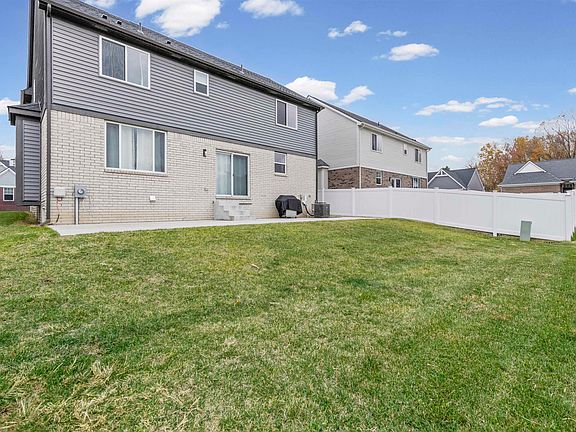 Check out this stunning 4-bedroom, 2.5-bath Colonial built in 2022 — just minutes from beautiful Lake St. Clair! Tile foyer leading to first-floor office or den, half bath, and coat closet. The open-concept layout features a spacious great room with a cozy gas fireplace, seamlessly connected to the kitchen and dining area. The kitchen offers a large island, pantry, stainless steel appliances, and a doorwall that opens to the back patio — perfect for entertaining. Spacious mudroom off the garage includes built-in cabinetry for added storage and organization. Upstairs, the primary suite features a huge walk-in closet and private bath. Enjoy the convenience of a second-floor laundry room — washer and dryer included! 2 Car attached garage. taxes are non homestead.