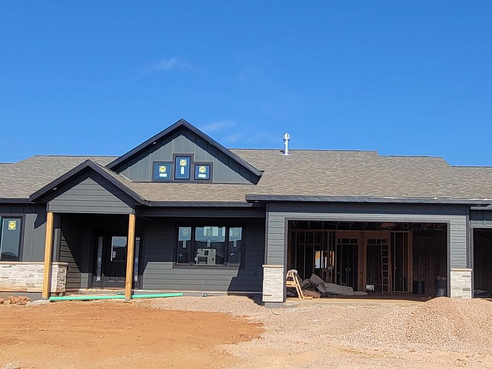 NEW CONSTRUCTION READY FOR NEW OWNERS. RELAX..Here it is! Top quality one level ranch designed with you in mind. Many touches you will appreciate; wide hallways, roomy bedrooms, open spacious kitchen with granite tops, pantry. Custom fireplace with live Birch log mantle to warm up by. Designed with vaulted ceilings, trapezoid windows for natural lighting throughout main living area. Huge 3+ (4 car tandem) garage with room for work area or toys. Covered back patio to enjoy morning coffee or evening stars. This is a beautiful home ready for new owners.
