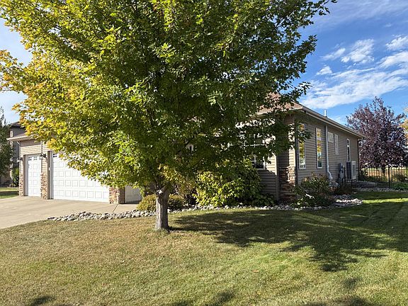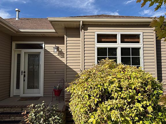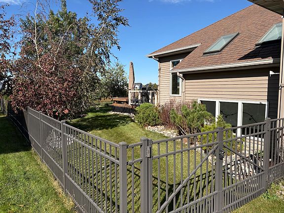 Showings start Wed., Oct 15. Backs to a pond and green space for scenic view and more privacy! Big 80’ x 140’ yard (0.26 acre). Ornamental metal fencing. Steel-siding & ledge stone trim. 4-season sun room has teak hardwood floor. Maintenance-free deck. 9 ft high ceilings on entire main floor & tray ceiling in living room, which has a gas f/p. Kitchen granite counters and breakfast bar, walk-in pantry closet. Teak floor in kitchen & dining. Large master bath, ceramic tile shower with two shower heads, separate jetted tub, big vanity with two sinks, and ceramic tile floor. Walk-in closet in master bdrm. Bright main floor guest bdrm makes a perfect home office. 3 more bdrms with egress windows and brick design, concrete window wells in bsmt (no built-in closet in one bdrm). Huge fam rm with gas f/p has clerestory with skylights. Finished heated garage. NEW high-efficiency natural gas furnace & air conditioning systems Aug. 2025. Ask for the extra features document. No special assessments!