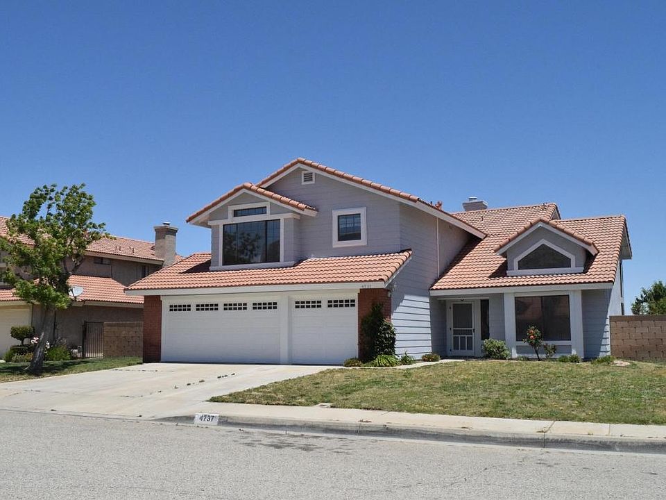Make time to see this upgraded 2-story home with spa and a spectacular 180 degree valley view! This 4 bed/3 bath plus loft home has a bedroom and full bath downstairs, laminated wood floors in the common rooms, tile in the kitchen and bathrooms and new carpet upstairs, new exterior and partial interior paint, a spacious master suite with separate tub/shower, walk in closet, a fireplace and lovely valley views. Another feature is the huge loft room upstairs. Outside is where you will find more lovely features including a spa with built in music system/speakers, front and rear lawns, fenced dog run, drip irrigation for trees and plants, and a balcony with an awesome panoramic view of the AV.