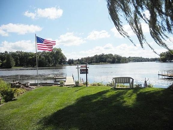 Well maintained 2 bedroom ranch home with 50 feet of level frontage on Fox River/Tichigan Lake. Updated with newer siding, roof, some windows, drywall, new flooring and fresh paint throughout. Expanded driveway/parking, new sidewalk, new retaining wall and professionally landscaped! Mature trees for privacy. Pier and appliances included.