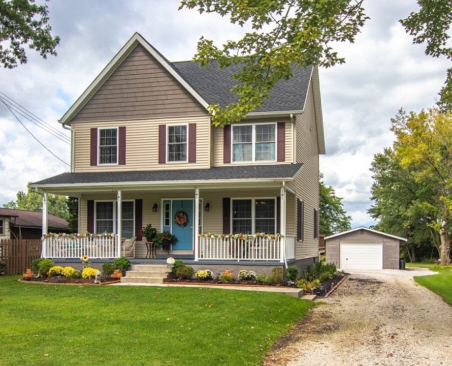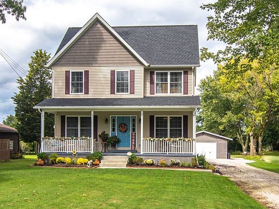 Welcome to 4737 Tallmadge Road in Rootstown Township! This beautiful turn-key home features 1,720 sq. ft. of living area with 3 bedrooms, 2.5 Baths, full unfinished basement and a 1 car detached garage all on 1.5 acres of land. The first floor boasts a Great Room with LVT flooring throughout, gas fireplace, and kitchen with large island, white cabinetry, granite countertops, subway tile backsplash, and matte stainless-steel appliances. In addition, there is a dining area, a 1/2 Bath, and laundry room that completes the 1st floor. Upstairs you will find 3 bedrooms and two full baths. The spacious primary suite offers a walk-in closet, a bathroom with tiled shower and ceramic tile floor and a double vanity. The unfinished basement is a blank slate waiting to be finished to your liking. Outside there is a charming front porch, wooden rear deck, in addition to the 1 car detached garage. Don't miss out on the opportunity to own this great home!