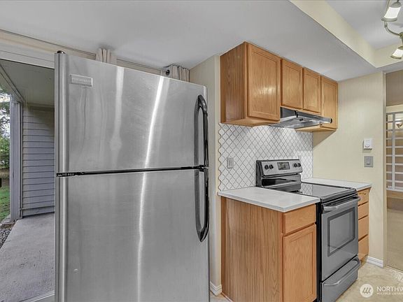 Check us out! Remodeled, with Maple cabinets, Granite countertops, Stainless appliances, Beautiful tiled backsplash, Trek lighting and more in the kitchen. Living rm with Gas fireplace insert, to lower your Utility Bills! Full bath with J&K Cabinets and Granite counters, also showing off our beautiful tiled, wall surround. Utility Rm, has a newer stackable W/D, and plenty of storage area. Primary, with walk in closet. Newer, window package, floor moldings, light fixtures, faucets etc., throughout. Flooring is Berber carpets and laminate. Two sliding doors to private patio out back. Pet friendly complex and located to state parks, I-90, Costco, and close by Issaquah schools and shopping! VA, existing assumable mortgage available at 2 1/2%.