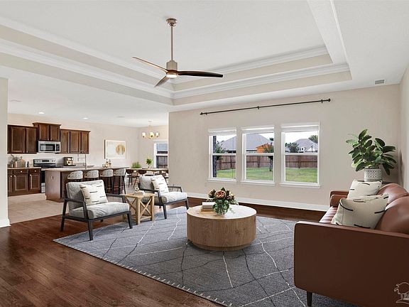 This beautiful and spacious 4-bedroom, 2.5-bath home nestled on a desirable corner lot in the highly sought-after Spencer's Ridge community of Pace is ready for it's new owners! This property offers the perfect blend of quiet, well-kept neighborhood living with the convenience of being just minutes away from shopping, restaurants, and entertainment. Step inside to an open-concept living area and kitchen, featuring elegant recessed lighting and tray ceilings designed for both daily living and entertaining. The split floor plan provides a private retreat for the homeowner, featuring a generously sized primary bedroom and a spacious en-suite bathroom. The home is as functional as it is beautiful, with a 2-car garage for all your storage needs. Enjoy the outdoors in your fully fenced-in backyard, covered back patio, complete with an irrigation system to keep your lawn lush and green with ease. Added peace of mind comes with a professional termite prevention system and alarm system. Live the lifestyle you've been searching for in Spencer's Ridge, a neighborhood that truly combines peaceful, suburban comfort with unparalleled convenience. For a qualified buyer, this home also offers an assumable VA loan!