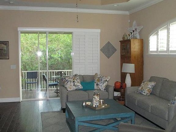 Beautiful and like new, this 3 bedroom 2 bath villa with a 2 car garage is located in the gated community of Gulf Harbor Villas. Just built in 2015, this villa is updated with hand scraped wood floors, crown molding, plantation shutters and so much more. The kitchen boasts 42 wood cabinets, upgraded granite counter tops and stone back splash along with upgraded stainless appliances. The open floor plan features a grand formal pillared entryway, volume tray ceiling, a friendly family room and a formal dining room. The master suite offers his and her closets and a large master bath with walk in shower and dual sinks. Enjoy your morning coffee on the tiled screened lanai while enjoying nature. Relax and enjoy maintenance free living and a private beach club. Gulf Harbors offers a private beach with covered picnic areas, grills and restrooms. There is also a Civic Center with lots of activities and access to a boat ramp to launch your boat. Move in ready, don't wait on this one!