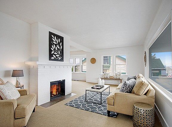 Original 1916 Craftsman/Traditional home with a Great wireless views of the Sound & Emerald City. Come walkthrough your original big porch to a open living & dining rm, with tons of natural light. Two good sized bdrms on the main with original tile bthrm floor & tub. The kitchen is sweet with original glass handles & breakfast/coffee table. Lower level features another small kitchen, huge open family rm or office/bdrm & bthrm. Very quiet/private backyard with oversized 1car detached garage.