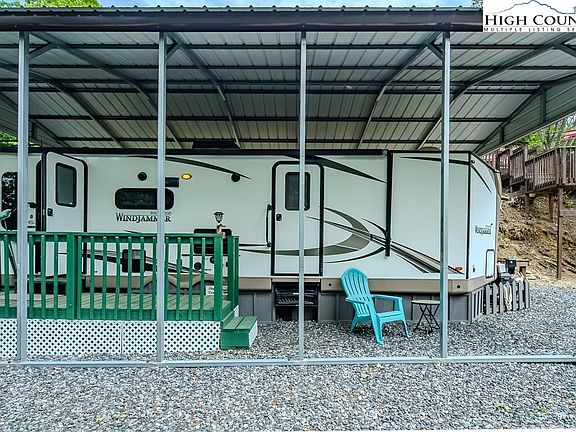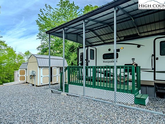 Enjoy your own mountain getaway on 1.257 acres featuring a 2018 Forest River Rockwood Camper under a protective carport. The property includes three storage sheds, two with electric—one equipped with laundry facilities including a washer, dryer, utility sink, and hot water heater. A winding trail offers room to explore and enjoy the outdoors. Fiber optics are run for use at the camper, connection is on the shed. Conveniently located just minutes from the Blue Ridge Parkway and near several restaurants, with easy access to the Jeffersons, Boone, and Wilkesboro. A great mountain property offering all the essentials and main systems needed for a weekend retreat, simple mountain living, or rental property.