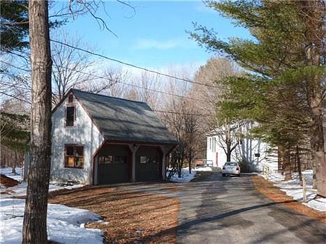 Bright & Sunny Home, tucked back off road, situated on lovely level country 4 acre lot. Home offers open concept, kitchen/dining/living room on second floor level. First floor has bedrooms and full bath. Big windows, very bright. Detached 2 car garage, paved drive. Close to Thompson Lake and the marina.