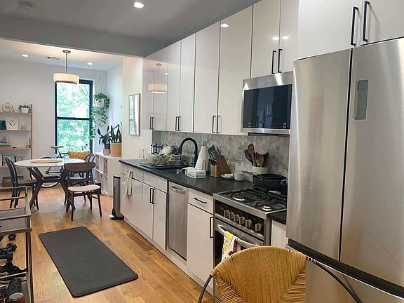This unit is actually designed to be a three bedroom however we left it as a two bedroom There's space for a huge couch and fits a kitchen table. THE KITCHEN: This BRAND NEW, modern kitchen is everything you could ask for. State of the art stainless steel appliances, such as the Haier French door refrigerator and Over-the-Range Microwave. Along with, beautiful counter tops, large modern cabinets, and LED Geodesic pendant lighting. And who can forget the Haier dishwasher to make all your cleaning duties simple and easy! THE BEDROOM: Two large bedrooms that are Cable ready perfect for a lazy Sunday. White Oaks hardwood floors, recessed lights, and so much more. Boosted with high ceilings, for a grand and elegant look. THE LIVING ROOM: The living room features White Oak Wood Flooring and receives an abundance amount of natural sunlight creating a spaciousness and elegance aura. On cloudy days, the unit is equipped with a rubbed drum finished Metal Drum Pendant light to enhance the lighting. Video "virtual doorman" intercom installed within every unit. The unit is equipped with tenant controlled heating and cooling air. THE BATHROOM: This beautiful brand-new bathroom is equipped with a deep tub that will make getting out of it impossible to comprehend! Industrial light fixtures comprised of rustic black pipes and include uniquely designed LED mason jars which create the perfect blend of modern and cohesive design. THE BUILDING: With an exterior as beautiful as its interior, this building defines "PERFECTION". The entire basement is accessible for all tenants. There is laundry in building, along with a Pool and Ping Pong table. The cozy backyard and grill are available to all tenants to enjoy the rarity of outdoor space here in NYC. THE NEIGHBORHOOD: The building is right in the center of Bedford- Stuyvesant. Nearby groceries, restaurants, pharmacies, gas stations, bars and so much more. It is also a short walk to the A & C trains, making your commute to Manhattan or anywhere else convenient and easy. * Guarantors Are Welcomed * Inquire about your new apartment TODAY to see floor plans, videos, and schedule a viewing text or call for speedier response rate. Broker fee $250