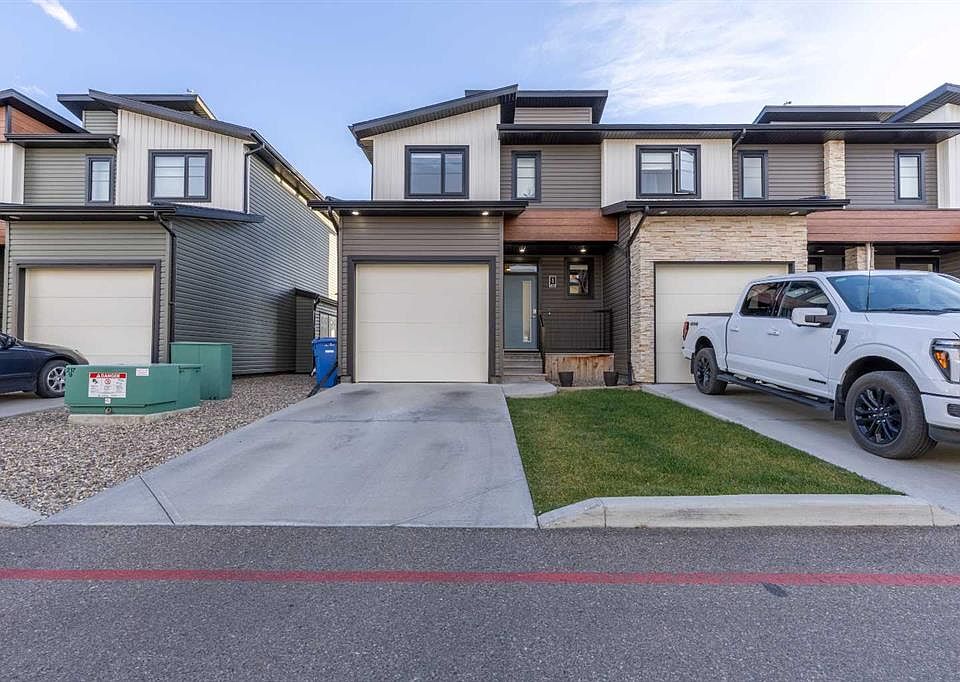 A Skye condo that backs onto Highlands Park! This dual primary home offers tremendous south-facing views of the lake, a single attached garage, walking access to major amenities and so much more. The main floor is bright, has a powder room, quartz counters in the kitchen and a cozy patio. There are two bedrooms upstairs both with 4 piece ensuites and walk-in closets. The basement is partially finished with framing completed already! It just needs your finishing touches!