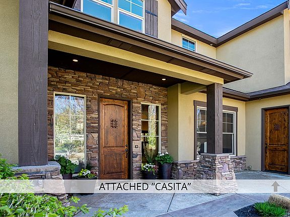 Originally a local builder’s personal residence, this home features stately design and superior materials and craftsmanship. From the long circular driveway and mature trees screening the perimeter, to the welcoming elevation on almost 1 acre, everything about this home is meticulous. An attached “Casita” accessed through its own front door makes the ideal home office or Mother-in-Law Suite. The backyard has room for a future pool, sport court, or detached RV Garage. Each level has a large Living Room area with rock fireplaces. The Primary Suite has an oversized walk-in closet and heated floors that extend throughout the entire main level. This stunning home is a rare find, combining timeless building elements and a picturesque location in one of Eagle’s premier custom home neighborhoods. Many memories will be made outside under the covered patio, charming water features, dozens of trees, firepit, play structure, and expansive lawn areas. Nearby community amenities include walking paths and large common area.