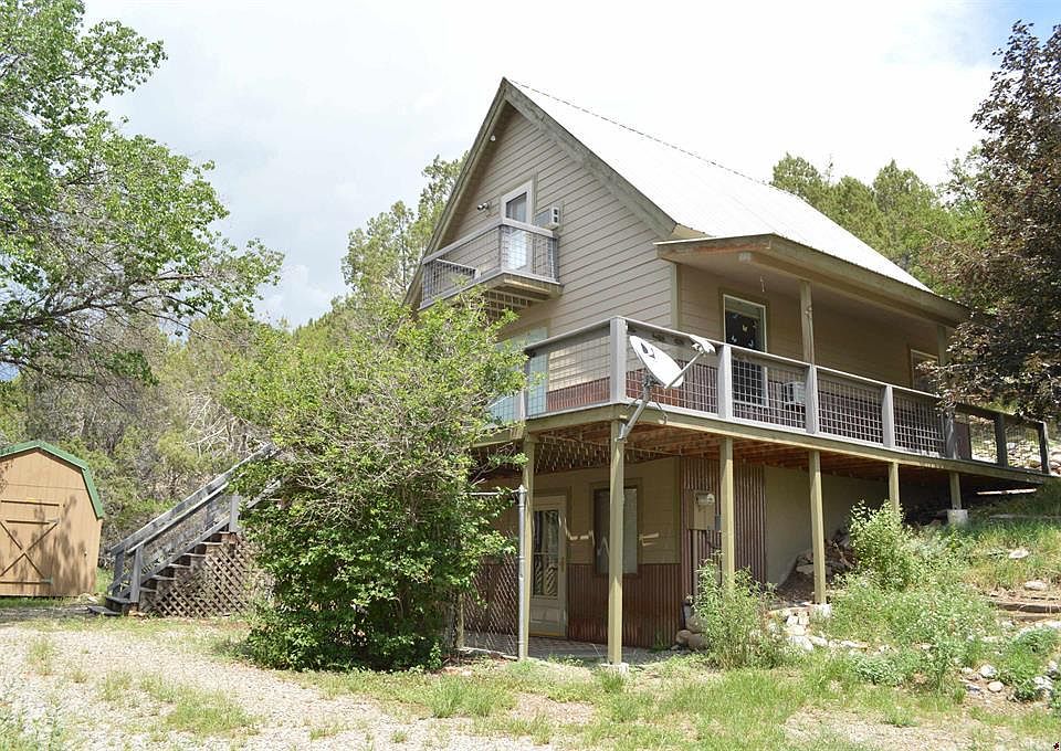 474 Rainbow Rd. is a unique and affordable entry into the Durango real estate market. The home is dated and will take the right buyer who is interested in a rural setting about 15 minutes south of Durango. The home is a 2 bed, 2 bath, that has some quirks like the spiral staircase and the natural spring water source, but offers a serene setting with the sounds of live water at this "end of the road" property. The water source is the Southfork of Zink Spring #8, a natural running spring that fills a cistern to the home as it flows by. The 6.4 acres and surrounding area is home to a variety of wild life that are sure to be some of your more common visitors. The home maybe functional for some buyers "as is" or this might be the perfect DYI project for the restless soul. In either case, this home is being sold "as is" "where is" and "with all faults" and has been priced accordingly.