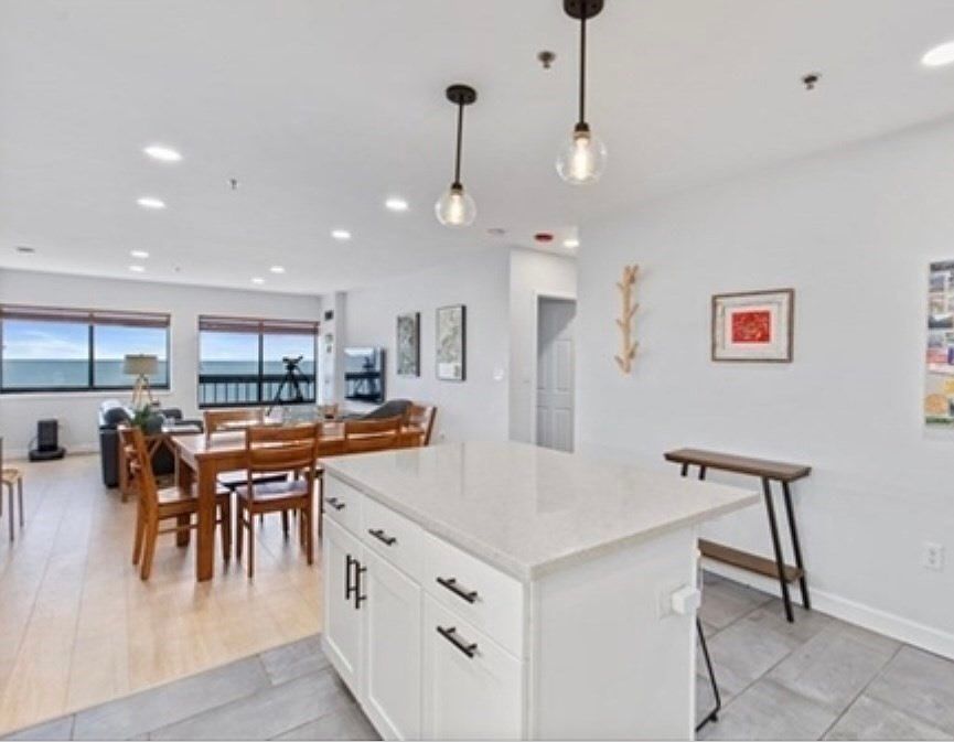 Wake up every day to stunning views of the ocean from the comfort of your own home.This sun-drenched condo offers an immersive coastal living experience. The heart of the home is the beautifully renovated kitchen with stainless steel appliances, a large island, and a modern layout—perfect for cooking, entertaining, and everyday living. The open space flows effortlessly and is designed with both style and function in mind. With two bedrooms (one is without a closet but designated as a 2nd bedroom per condo docs) with the option to use one as a generous home office—this unit offers flexible living to suit your lifestyle. Additional highlights include an in-unit washer/dryer, one deeded parking space (with the option to rent an additional), and newer appliances. Enjoy direct access to the beach and convenient proximity to highways, the train station, airport, schools, and shopping. Storage unit included.Condo fee covers heat, water, hot water, heated pool, master insurance.