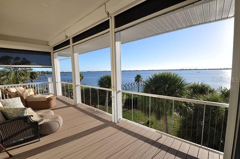 This lovely Key West style home overlooks Lemon Bay and the Intra Coastal Waterway. With two upper decks you will have panoramic water views and enjoy great sunsets! From the moment you enter the driveway, you will see beautiful palm trees and a wide variety Florida friendly landscape to enjoy. The house is custom designed and built, with 3 bedrooms, 2 ½ baths plus a den/office. The 3 storied home features two upper decks; one right off the kitchen which features a pass-through window for easy dining and clean up; and the top deck with sliding doors which open off each bedroom. The kitchen comes with beautiful granite countertops and a bar for eating. New composite decking installed in 2022, takes you from the front steps through all the exterior flooring. All new maintenance free railings, including cable railings were installed in 2022, enhancing the amazing view from both decks. The master bath features dual sinks, spacious walk-in shower, and claw foot bathtub. The guest bathroom was remodeled in 2022 and features dual sinks and a walk in shower. Other amenities include hardwood flooring upstairs and easy to take care of vinyl plank flooring in living room, kitchen and dining room. A half bath off the living room leads into the laundry room with its own sink. High ceilings, with recessed lighting gives this home a very spacious yet cozy feeling. Hurricane windows, hurricane rated garage door, door and window shutters, plus remote control hurricane rated screens give you beauty as well as protection. Two new A/C units were installed in the spring of 2017, new water heater in 2022, and the exterior house was painted in 2021. This home comes with a metal roof and there is lots of storage available in the garage area. You will enjoy outdoor dining with family and friends on the patio, as you look out over the bay and see lots of wildlife, including pelicans, dolphin and even some manatee. This is a wonderful place to relax and enjoy all that nature has to offer. You can easily walk or bicycle to downtown Dearborn Street; which hosts many festivals and events through the year. This property is zoned RMF2 and allows for additional residences on the property.