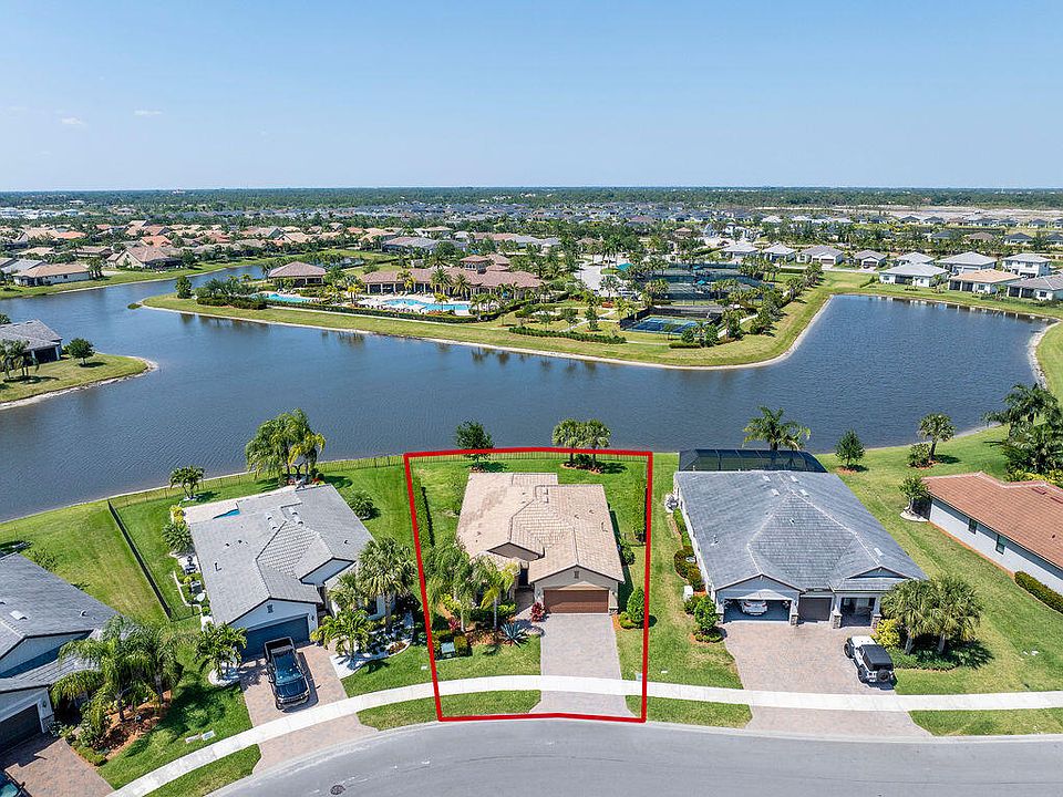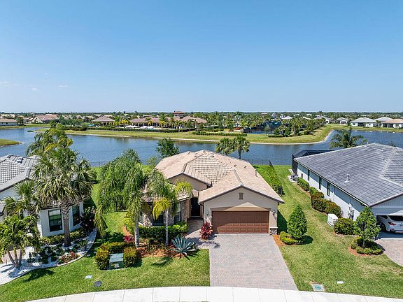 ITS*ALL*ABOUT*THE*VIEWS! This house has one of the most unique views and yard in all of Veranda Gardens. It is a pie shaped lot with over 80' along the largest lake. Stunning views run from all sides including deep water and gorgeous sparkling sunsets! The oversized yard is fully fenced and private looking over the water to the resort style clubhouse. The house has tons of natural light throughout and so peaceful staring out to the blue skies and water. House was redone from the original builder w/ wood look porcelain tile floors, expanded Kit island w/ 3'' quartz counter, designer fixtures, plantation shutters, crown moulding, whole house water filtration system, impact windows and doors, expanded garage, and more! Great location close to the turnpike and 95!