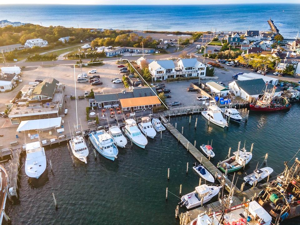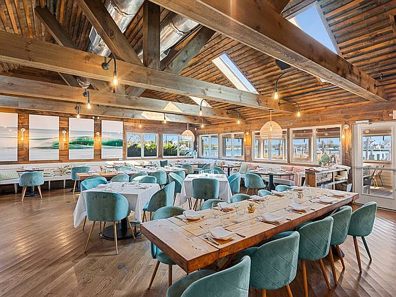 In the heart of Montauk Harbor, this Restaurant/ Bar Marina is a great opportunity to own a coveted waterfront property in a premier location. Clean, updated interior spaces are offered throughout this 3,000 sq ft turn-key restaurant with seating for up to 114 guests. The entryway has two restrooms for patrons and a hostess station that opens up to a beautiful bar with seating for 10+. This bar area also has a corner lounge with custom built-in banquet seating. The dining room is spacious and light-filled with plenty of seating including both built-in banquets, table spaces, and bar dining that opens up to the kitchen creating an inviting dining experience. Additionally, there is a covered outdoor dining area with it's own lounge as well, perfect for the warmer months. A spacious 1900 sq ft deck area on the waterfront is a great place to enjoy live music while watching the boats come and go through the harbor. The kitchen is fully operational and well maintained. A small office space and employee restroom are also accessible on the back side of the kitchen. The bulkheaded 0.61 acre property offers a total of 8 boat slips starting on the west side of the T-dock. The front of the property has approximately 40 parking spaces. This is a great opportunity to purchase a fully operational space on the water, and make it your own.