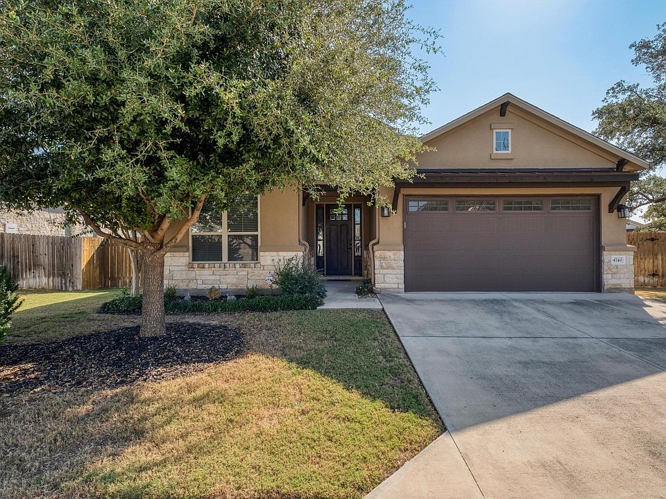 A Peaceful Retreat in the Gardens at Mayfield. Tucked within the gated Gardens at Mayfield community, this immaculate 3-bedroom, 2-bath home offers a warm welcome the moment you step inside. Sunlight fills the open-concept living space, highlighting the beautiful wood floors and granite countertops. The spacious kitchen, with its large center island and generous cabinetry, invites gatherings over morning coffee or family dinners. The primary suite is a comfortable retreat, featuring double sinks, a relaxing garden tub, and a separate walk-in shower. Well-planned walk-in closets throughout the home ensure there’s a place for everything. Step outside to a private, fenced backyard with a covered patio and no neighbors on one side, perfect for quiet evenings or weekend barbecues. Beyond your doorstep, adventure awaits at neighboring Southwest Williamson Regional Park, offering a splash pad, athletic fields, playgrounds, and miles of scenic hike-and-bike trails. Meticulously maintained and move-in ready, and a true sense of community within this small, secure neighborhood, this home offers both tranquility and connection. An easy place to love coming home to. Seller offering $2,000 landscape credit to buyer