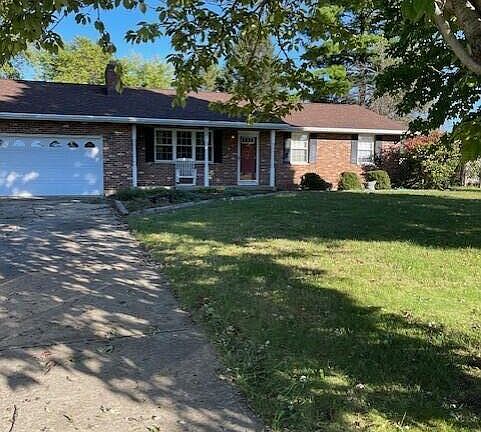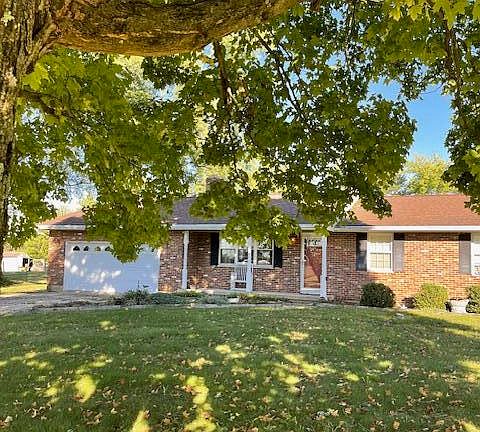 BRICK RANCH WITH A REAR ADDITION and 2-car garage. Sitting porch to enjoy this rural county road. The kitchen is open to the family room or space for a family table. North side office off of the family room. On the opposite side of the home, there are 3 bedrooms and 2.5 baths. Awesome owner's suite with a hugh bathroom. Walk out the owner's suite onto brick paver steps and Say Good Morning to a beautiful day, admiring the farm fields. Easy Breezy first floor laundry room and this home has many, many closets. Screened in porch for a plant sanitary or your place of peace to read and drink coffee.