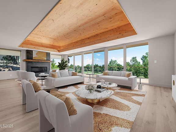 Stunning completely remodeled one-story home on the 5th hole of Lakeridge Golf Course. Located in a private enclave with sweeping city, mountain, and golf course views out oversized windows that also bring in lots of natural light. The extensive remodel includes new wood flooring, custom cabinets, LED lighting and fixtures, bathrooms, kitchen and appliances, new roof and sewer lines. This 2.4 acre enclave of only 4 homes is surrounded by the 3rd, 4th, and 5th holes of Lakeridge GC and is only minutes from shopping, dining, schools and Reno/Tahoe Airport. A private driveway leads into a spacious 2 car garage. The open great room features a remote controlled gas fireplace with a stunning 200+ year old wood mantle, and floor to ceiling windows which provides lots of natural lights and access to the expansive deck overlooking the 3rd fairway of Lakeridge Golf Course. A remodeled kitchen with custom cabinets features quartz countertops and island, Sup-Zero appliances and under-cabinet lighting. The large primary suite offers views of downtown, the mountains and golf course from the windows and a private deck. It includes a nook that could be used as a office. It has a spacious remodeled bathroom with separate tub and shower with beautiful stonework walls, double sinks, and large walk-in closet with custom cabinetry throughout. Enjoy outdoor living with incredible views of the city, mountains, and golf course on the decks off the living room and primary bedroom. A space for more lounging is in the interior courtyard. Monthly assessment includes water, landscaping maintenance, irrigation and snow removal.