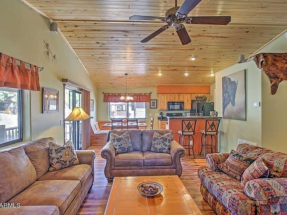 Looking for the perfect mountain getaway Look no further than this adorable 2 BR/2 BA log sided cabin in Show Low's stunning Bison Ridge community! Located directly across from the park w/ picnic tables, horseshoes, & playground, you'll love the view from the front yard! Walk in to find vaulted aspen ceilings, cozy rock fireplace, & custom built breakfast nook. All 100% turnkey! That's right, all you'll need is your toothbrush and PJs to start enjoying this one. Quick drive to the National Forest w/ miles of trails, less than 15 minutes to Fool Hollow Lake for fishing & kayaking! Golf is right around the corner too! A highly successful vacation rental, you'll have rentals on the books on Day 1 if you choose to continue renting! The definition of move-in ready, this one will go FAST!