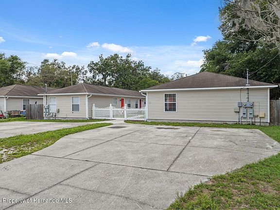 One or more photos have been virtually staged. This spacious duplex presents an excellent opportunity for investors or multi-generational living, offering two 3-bedroom, 1-bath units with open floor plans and breakfast bars that enhance the sense of space and functionality. One of the units has been beautifully remodeled, showcasing fresh wood-look flooring, elegant white quartz countertops, a stylish backsplash, and brand-new appliances that bring a modern and polished touch to every room. The other unit, while functional, retains its original features with tile flooring and an overall outdated aesthetic, providing potential for customization or renovation. Perfectly situated in the heart of Zephyrhills, this property is just 1 mile from Zephyr Park, a serene setting with walking trails, picnic areas, and a picturesque pond. The Sarah Vande Berg Tennis & Wellness Center, only 2.5 miles away, offers high-end amenities for fitness and wellness enthusiasts. For shopping and dining, The Shops at Wiregrass are 10.5 miles away, featuring a lively mix of stores and restaurants in an open-air environment. Additionally, AdventHealth Zephyrhills is just 2 miles from the property, offering convenient access to quality healthcare services.