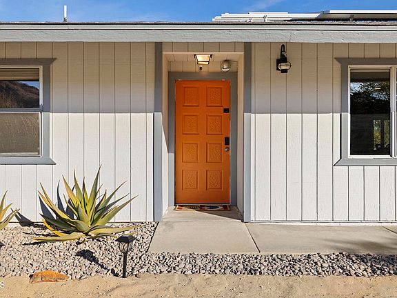 Escape to your own desert oasis in this beautifully remodeled Joshua Tree retreat, where modern comfort meets serene high-desert living. Completely updated in 2019, this turnkey home features paid-off solar and a resort-style saltwater pool and spa. The inviting great room includes a stylish kitchen with stainless steel appliances, a cozy living area with an electric fireplace, and a breakfast nook perfect for morning coffee. The home includes four spacious bedrooms and three bathrooms, with two bedrooms featuring en-suite baths and pool views. A third bath, office, and attached garage converted into a game room add flexibility. Large sliding doors open to a stunning backyard surrounded by lush desert landscaping, with multiple outdoor zones for relaxing or entertaining--enjoy shade sails, a hammock, fire pit, BBQ area, and endless stargazing under the desert sky. Set on nearly half an acre in a peaceful neighborhood, this home offers privacy and tranquility just five minutes from downtown Joshua Tree and fifteen minutes from the National Park entrance. Offered fully furnished, move-in ready, and near local favorites like Crossroads, the Dez & the weekly farmer's market, this incredible property embodies the essence of desert living.