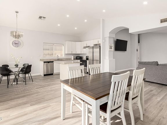 Stunning single-level POOL home in the sought-after Montaire! The interior seamlessly blends style, convenience, and comfort, featuring wood-look flooring, vaulted ceilings to create a sense of openness, contemporary lighting, and neutral paint. Whip up your signature dishes in the pristine culinary space, complete with white shaker cabinets, granite countertops, SS appliances, and an island perfect for entertaining. The tranquil main bedroom promises a good night's sleep, offering a walk-in closet for easy organization, a full bathroom with double sinks and a separate shower & tub, and a private exit. Both bathrooms have just been renovated for comfort and peace of mind! Enjoy year-round entertaining in the backyard, featuring a covered patio ideal for morning coffee and a heated pool! peaceful evenings, a comfortable seating area perfect for weekend grills, a lush grass area, and a newly upgraded heated pool to enjoy sunny days! Welcome home!