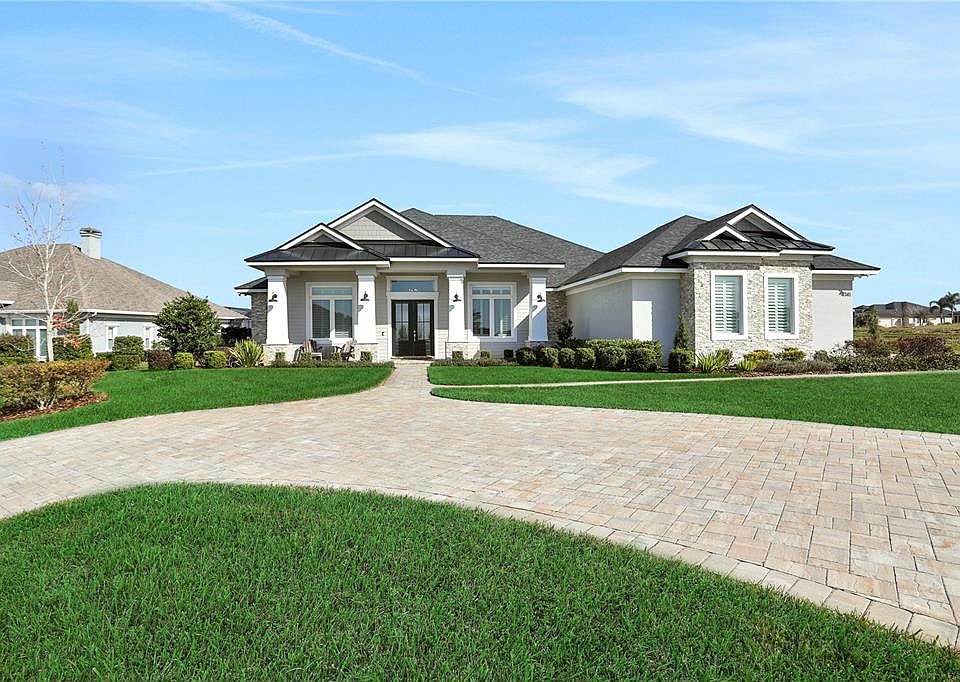EXQUISITE LAKEFRONT PROPERTY SITUATED IN GATED EMERALD PALMS COMMUNITY, CUSTOM HOME "BUILT BY WATERS" with every award-winning detail, making this exceptional property a true 4bedroom 4bath plus office dream home!!! Thoughtfully designed, this home is perfect for entertaining & enjoying the sunny Florida lifestyle! Custom grand-scale windows allow for glimmering natural light. The Chefs kitchen combines beauty & functionality. Quartz countertops, custom cabinetry and the most incredible 6-burner “Fulgor Milano” gas stove, make this kitchen a cook's paradise! The walk-in “butlers” pantry provides tasteful storage for your kitchen’s smaller appliances. Enjoy the open feel while sitting at the magnificent quartz island and taking in the tranquility of the lake views. Relax on the Travertine lanai with heated salt-water pool & spa, perfect for “al fresco” dining year ‘round! This wonderful, casual space boasts a covered summer kitchen with all of the bells & whistles! Wide-plank neutral tile flooring contributes to the overall casual elegance of this special home as do the tongue & groove patio ceilings. The tranquil setting with no rear neighbors creates quiet spaces for enjoying nature. The triple-split bedroom plan will give your guests & family a private experience. All four bedrooms were designed and sized for comfort, and the primary suite boasts lake and pond views with a truly luxurious & well-appointed bath. The free-standing soaking tub & separate shower provide a soothing retreat. The California closets are extremely functional and allow plenty of room for storage. This like-new gorgeous contemporary home simply has it all!! The home was built in 2020 and is the perfect combination of "LUXURY MEETS CASUAL ELEGANCE"! Extensive crown molding, contemporary lighting, rustic barn doors, separate private office, an amazing laundry room, brick pavers for parking with circular driveway, a 3-car side load garage. The quiet cul-de-sac location overlooks Lake Winterset on the Chain of Lakes & is nestled on a gorgeous street with multi-million-dollar lakefront properties! This immaculate residence even features an incredible herb & vegetable garden for a healthy lifestyle! This truly is "THE PERFECT HOME" - a must see & you can have it all! Located just minutes to Legoland, medical, shopping & close to the I-4 corridor, centrally located between Tampa & Orlando. Call today for a private showing.