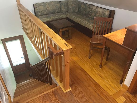 Bathroom is tile and glass door shower. Kitchen is tile and has butcher block counter. Wood floor and plenty of windows throughout.