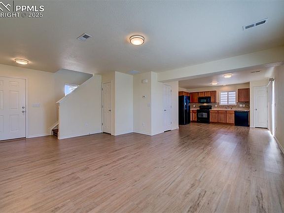 Discover effortless living in this meticulously maintained 3-bedroom, 2.5-bath single-family gem, nestled in a serene, maintenance-free community where lush grounds and landscaping are handled with care—leaving your weekends free for what truly matters: family adventures, weekend hikes, or simply unwinding in your own backyard oasis. Step inside to an open-concept heart of the home: a spacious walkout kitchen and dining area flows seamlessly into the inviting family room, perfect for casual gatherings, holiday feasts, or cozy movie nights. The kitchen boasts ample counter space, modern appliances while sliding glass doors open to your private patio, where you can grill your favorite cuisine, blending indoor comfort with outdoor charm. Upstairs, retreat to three generously sized bedrooms, each a peaceful haven with plenty of natural light and closet space. Two full bathrooms ensure morning routines run smoothly, and a conveniently located laundry room upstairs as well, making laundry an easy task. A convenient half-bath on the main level adds that extra touch of convenience. Also has a NEW ROOF, NEWER WATER HEATER & FLOORING!!! Priced to sell and ready for your personal flair, this home's prime location puts you minutes from Peterson Space Force Base and the bustling Powers Corridor—enjoy easy access to shopping, dining hotspots, top-rated schools, and outdoor recreation. No more yard work, just pure Colorado living at its finest. Don't miss this rare opportunity—schedule your showing today and make it home! **HOME IS CURRENTLY TENANT OCCUPIED**