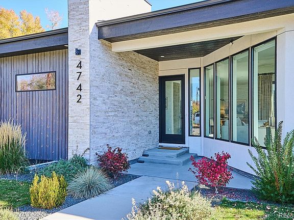 Stunning Mid-Century Modern masterpiece in the heart of Sunnyside, offering ranch-style living at its finest. Filled with natural light from expansive windows, this home showcases an open floor plan designed for effortless everyday living and elegant entertaining. Accordion-style doors create a seamless transition for indoor-outdoor living, leading to a private terrace perfect for relaxing or hosting guests. Designer finishes abound, featuring high-end Porcelanosa tile and thoughtfully curated details throughout. At the heart of the home, the chef’s kitchen impresses with quartz countertops, a waterfall island, Dacor French Door refrigerator, JennAir range top and oven/microwave combo, custom tile backsplash, and upgraded lighting selections—ideal for both cooking and entertaining. The main level includes a luxurious primary suite with walk-in closet and spa-inspired bath complete with standalone tub, dual vanities, and walk-in shower. Two additional bedrooms share a Jack-and-Jill bath, while an exquisite powder room showcases designer wallpaper. Custom curtains in select rooms, Hunter Douglas Roman shades in all bedrooms, and remote-control shades in the primary suite and living room add both function and sophistication, complemented by a whole-house Honeywell steam humidifier. The fully finished basement extends the living space with an expansive recreation room, wet bar with refrigerator and dishwasher, three additional bedrooms, full bath, second laundry hookup, and plush wool carpeting—just another of the home’s many upgrades. Outside, enjoy a professionally designed and landscaped backyard with a custom garden box, perfect for outdoor dining and relaxation. Completing this exceptional property is a detached three-car garage. Ideally located just steps from Rocky Mountain Lake Park and Berkeley Lake Park, and near Tennyson Street, the Highlands, and downtown Denver, this home combines modern elegance, thoughtful upgrades, and an unbeatable Colorado lifestyle.