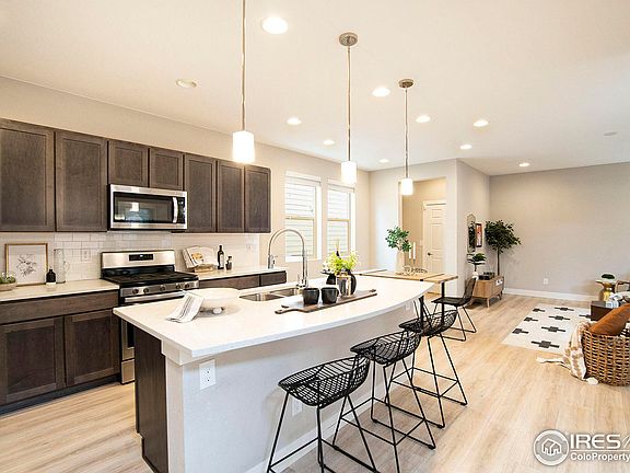 Welcome to your new home in vibrant Denver! This inviting two-story residence combines classic charm with modern conveniences, offering a perfect blend of comfort and style. Step into the spacious living area, where natural light floods through large windows, highlighting the elegant luxury vinyl plank floors and neutral color palette. The open-concept layout seamlessly connects the living room, dining area, and kitchen, making it ideal for entertaining. The kitchen is a chef's dream, featuring granite countertops, stainless steel appliances, and ample cabinetry. As you make your way upstairs enjoy airy windows along the way adding character to the home. The primary suite is a serene retreat with a generous walk-in closet and a luxurious en-suite bathroom. Three additional bedrooms and an office offer plenty of space and comfort. The side yard is perfect for outdoor gatherings or simply enjoying a quiet evening with a spacious patio with pergola providing a great spot for barbecues and al fresco dining. With an additional fenced side yard, two car garage and a tall crawl space you will have all the room you need for storage. This home is fully equipped with solar, contributing to your new low maintenance lifestyle. Enjoy this up and coming community with green spaces throughout, a Hub with pool, hot tub and space your can rent out, and walking trails throughout. Just 15 minutes to Denver International Airport and 5 minutes to E-470 commuting to downtown or the surrounding areas will be made easy! Don't miss your opportunity to see this move-in ready home today!