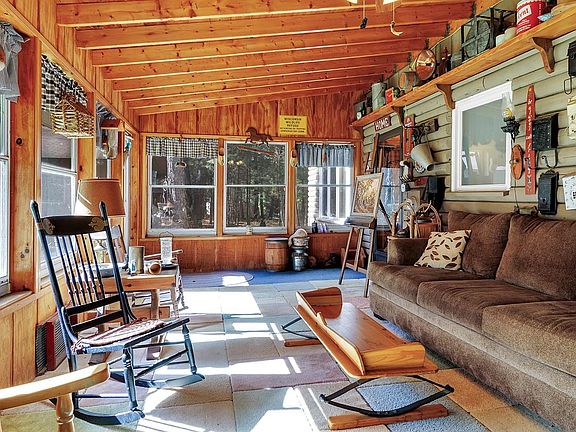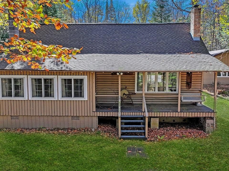 Step back in time at this rustic 2 BR, 1 BA cottage w/loft, nestled along 230 ft of Turtle River frontage, just before the bend into Lake of the Falls. 3.17 wooded acres offer both privacy & a peaceful connection to nature. Cottage with vintage charm, hardwood floors throughout, cathedral-ceiling living room with free-standing fireplace, spacious glass-enclosed porch perfect for relaxing & taking in the sights & sounds of the Northwoods. Country-style kitchen w/wooden cabinetry, farmhouse sink & appliances, dining area showcases a true cabin feel with wood cabinetry & carefully curated décor adding to the timeless character. Upper loft area with 2 large BR provides cozy comfort for family or guests. An unfinished basement offers additional storage or workshop potential. Det 2-car garage w/24x14 bunkhouse, ideal for guest overflow or entertainment space. Gentle approach to the water, towering trees & serene river views, a Northwoods retreat brimming with nostalgia & natural beauty.