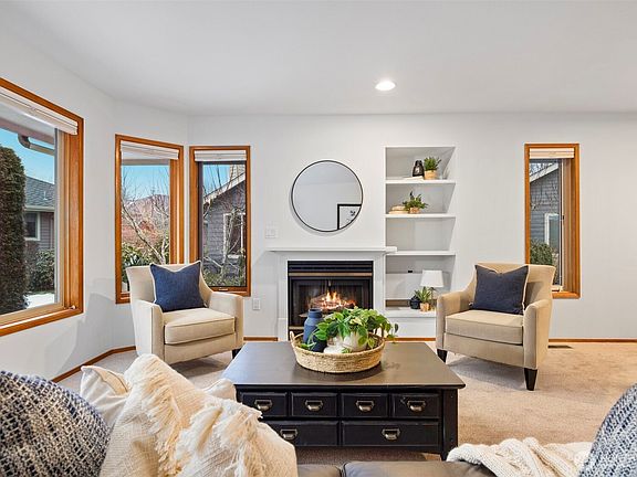 One-level, just-remodeled condo in 55+ Village at Cordata features 3 BR's, 1.75 baths + a 2-car garage. Largest floorplan available at 1,733 SF. Brand new carpet, interior paint & all new elec. switches, outlets & fixtures. The living room is flooded in natural light & includes a cozy gas fireplace. The bright kitchen has hardwood cabinets, granite counters & a comfy dining space. All kitchen appliances included + washer/dryer in the separate utilty room. 2 main-floor BR's include en-suite baths. Beautiful composite deck faces park-like lawn & pond area for nature lovers. HOA includes RV parking lot, woodworking shop, indoor heated pool & spa, club house, mailroom, exercise room, library. Sewer, water & basic cable included in HOA fee.