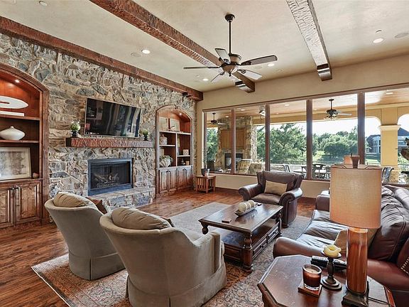 Mediterranean Style family home with all the amenities. Casually elegant home designed for entertaining and outdoor living. Hand scraped hickory and natural stone flooring. Gourmet kitchen with Thermador appliances and extra large pantry. Home theater with all the amenities 2nd floor. Outdoor area too awesome to describe. Game room downstairs with complete bar area opens out to outdoor area with telescoping sliding doors. Complete outdoor kitchen, covered patios with motorized shades, outdoor fireplace and pit, pool with fountains and attached spa. Covered outdoor balcony on second floor and third floor observation deck. On 3rd hole of Four Seasons TPC course alongside the pond with views of fountain.