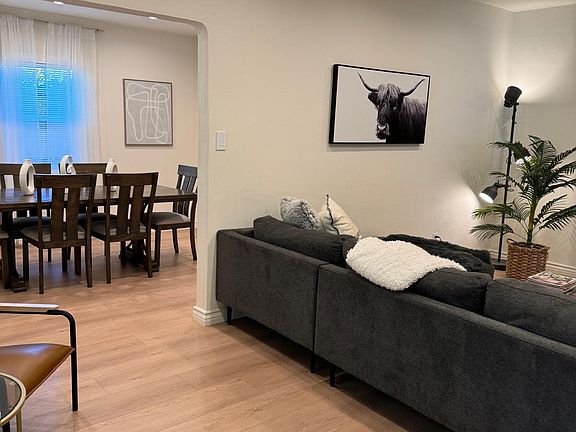 This delightful traditional-style house is ideal for families or those in search of a snug and tranquil dwelling. The residence features an abundance of windows, bathing the interior in natural light. t's conveniently located just minutes from schools, stores, shopping centers, and the renowned Universal Studios Hollywood. The single-story home features 1,406 sq ft, four bedrooms, two bathrooms, a beautifully enclosed front yard, and a welcoming patio. The bathrooms have been recently remodeled, the rooms have been updated with new floors, windows and newly painted. The spacious backyard and patio offer a tranquil setting, complete with furniture. Recent upgrades include water-resistant flooring, the installation of numerous recessed lights, complete bathroom remodels, a fresh coat of interior paint, and the replacement of all windows with double-pane glass to enhance insulation and reduce noise. Truly a one-of-a-kind home! Furnishing is available as an option, but the lease price does not cover the cost of furnishings.