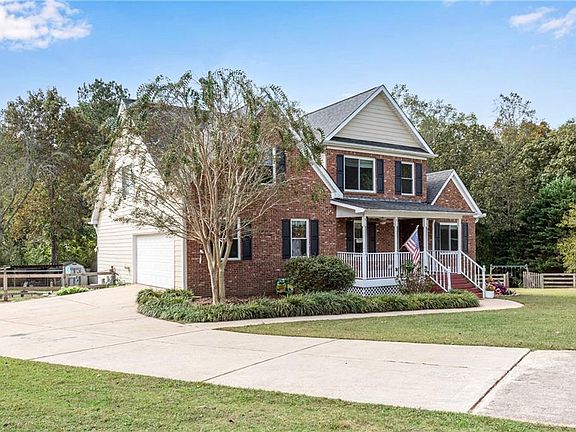 Beautiful Brick Front Cul-de-Sac Home with Rocking Chair Front Porch, IN-GROUND HEATED SALTWATER POOL, and a Finished Basement with In-Law Suite! This spacious home sits on almost 1 acre with a private fenced backyard overlooking a peaceful pasture. The main level features a Master Suite on Main with a trey ceiling and walk-in closet. The vaulted 2-story Great Room with fireplace flows into the open-concept layout, including an Updated Kitchen with granite countertops, breakfast room with vaulted ceiling, and a formal dining room. The newer refrigerator remains! The breakfast room opens to a large deck overlooking the pool and expansive backyard. Upstairs you’ll find 3 additional bedrooms, while the Finished Basement offers a true In-Law Suite with bedroom, full bath, kitchenette, workout area, family room, and a game/media room. Two storage sheds provide plenty of space for yard and garden equipment. Rare opportunity to find a heated saltwater pool home at this price point—don’t miss it!